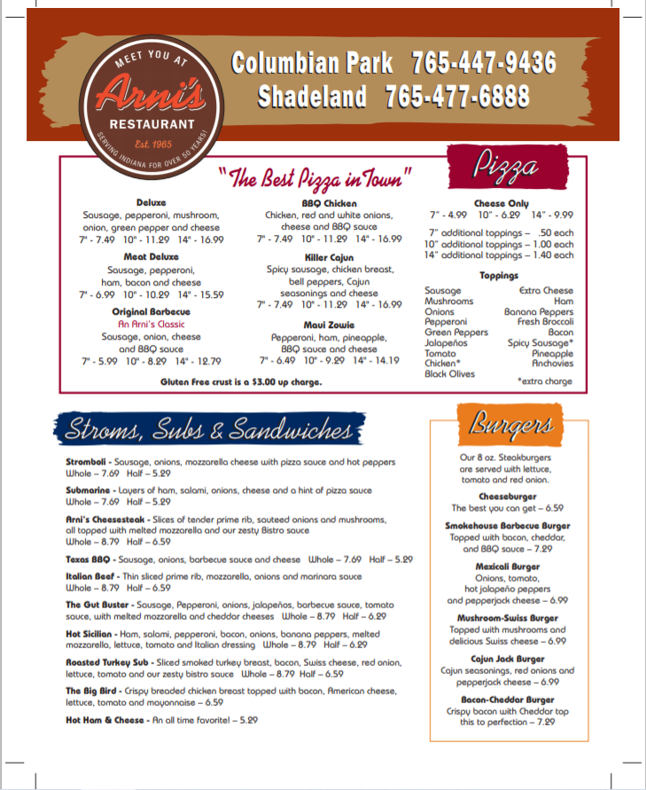 Welcome to Arni's Columbian Park, a beloved pizza destination nestled in the heart of Lafayette, Indiana. Located at 2323 Wallace Ave, this cozy eatery is not just a place to grab a slice; it’s an experience for the whole family. With a reputation for quick and friendly service, customers rave about the efficiency of the staff and the consistently accurate orders, ensuring that every visit is a hassle-free experience.